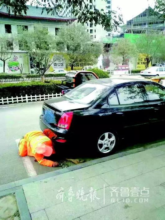 “城市美容师”.林秀来趴车下清扫垃圾。为“最美环卫工”。杂物垃圾别再随意丢弃了.爱护环境,人人有责!