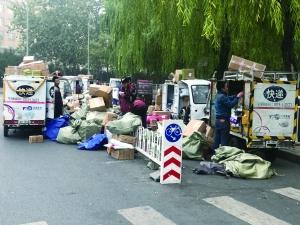 北京晨报现场新闻(首席记者 张静雅)“双十一”过后,快递业务繁忙。昨天,市民李先生反映,在芳星园三区门口,物流点占用便道堆放货物,市民出行十分不便。北京晨报记者在现场看到,快递堆满便道,且快递车占道停放,影响附近住户出行。城管部门对此表示,会尽快核实处理。