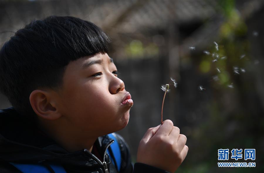 11月18日,刘森在上学路上摘蒲公英吹着玩。