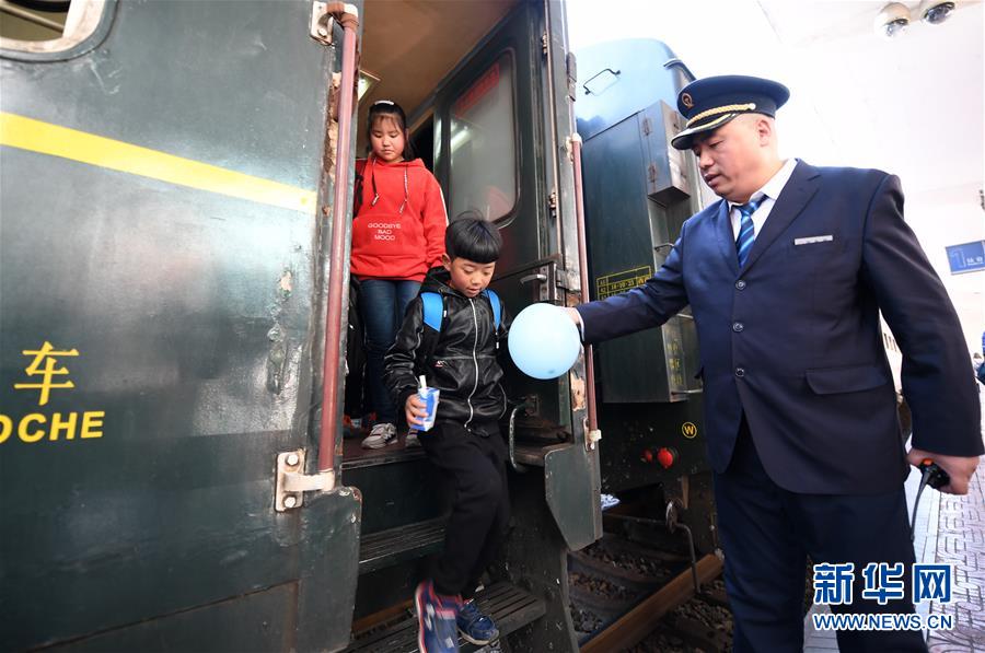 11月18日,刘森乘坐6063次列车抵达略阳站。 新华社记者李一博摄
