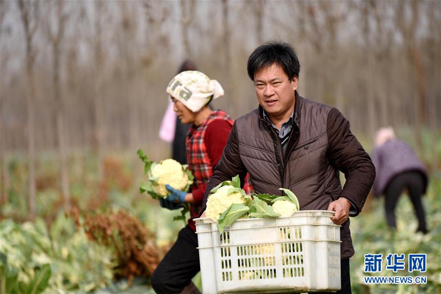 11月25日,河北省威县佃尚营村驻村第一书记孙业峰在田地搬运菜花。新华社记者 朱旭东 摄