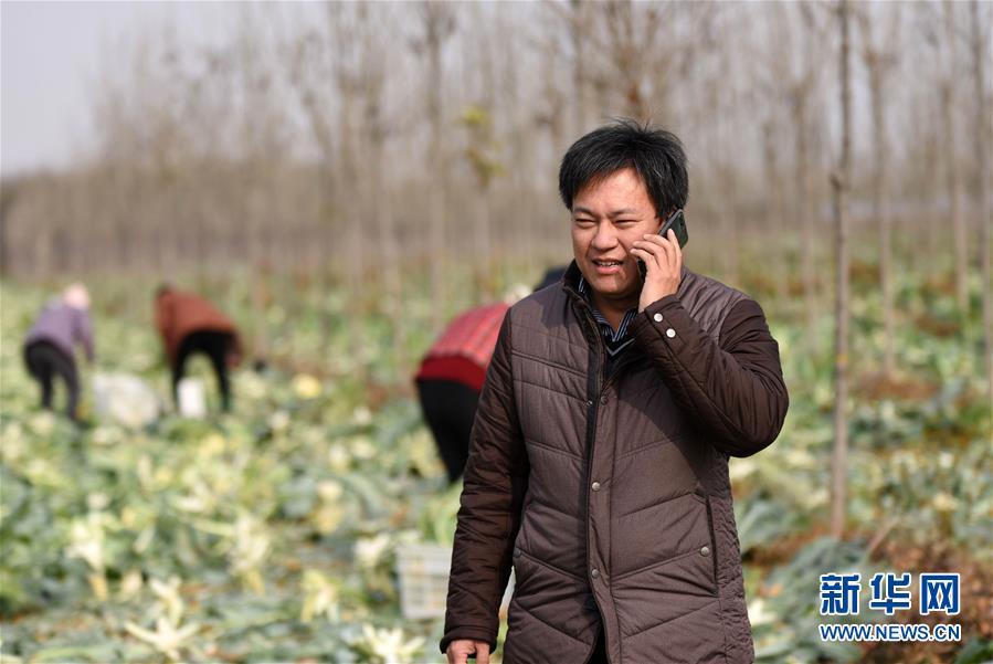11月25日,河北省威县佃尚营村驻村第一书记孙业峰打电话联系蔬菜订户。新华社记者 朱旭东 摄