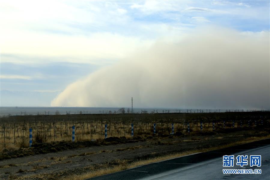当日,甘肃省张掖市出现沙尘天气,当地气象台于16时45分发布沙尘暴黄色预警信号,预计未来12小时内,甘州区、高台、临泽、山丹将出现沙尘暴天气。 新华社发(陈礼 摄)