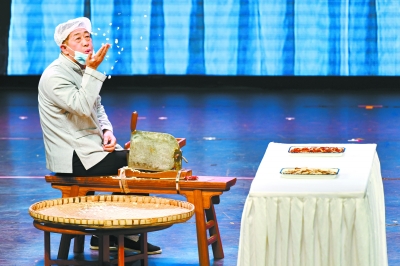 商业服务业技能大赛总结汇报会上,卢振英展示中药切片技术。