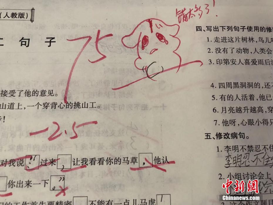 贵州一小学女教师用卡通画改试卷鼓励学生
