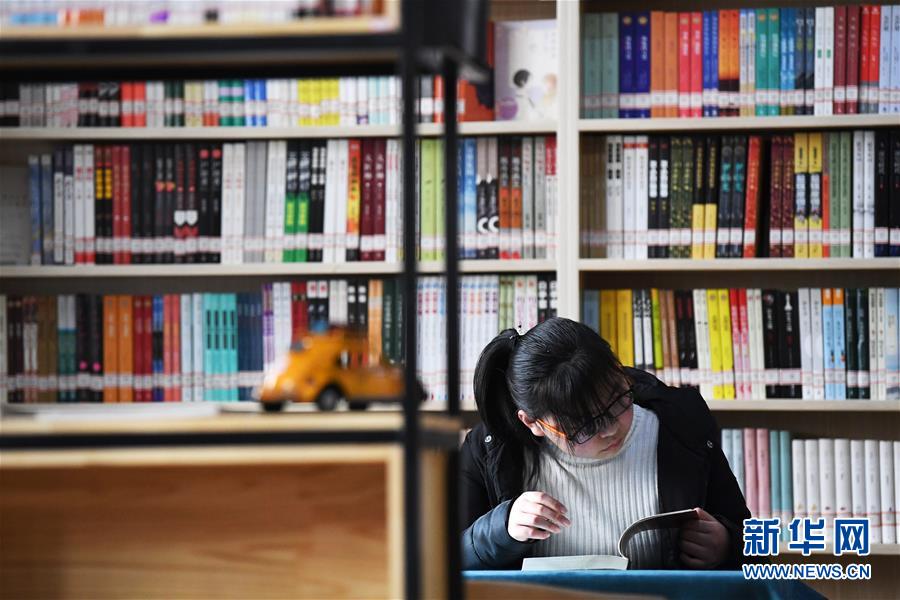 1月17日,学生在甘肃省兰州市西固区临洮街社区“读者小站”里阅读。