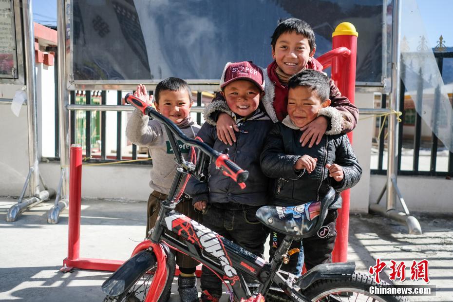 1月24日,2019年西藏网络媒体新春走基层活动走进林芝市朗县松木材村。2017年松木材村被确定为边境小康建设示范村,总投资1670万元人民币,用于29户民房以及相关设施的新建,目前建设已全部完工,当地村民于2018年8月前全部搬迁入住,2019年将是松木材村村民在新家度过的“首个”春节藏历新年。图为松木材村玩耍的孩童。中新社记者 何蓬磊 摄
