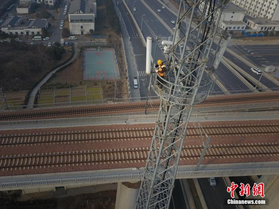 1月24日,河南郑州,牛军辉仅用10分钟就登上了一个60米高的铁塔,他需要对300多个螺栓进行紧固,螺栓紧固只是铁塔维护的冰山一角,在整个作业过程中,牛军辉还要对铁塔平台、爬梯、防护网、天线支架等附属构件的安装牢固度进行检查。中新社记者 王中举 摄