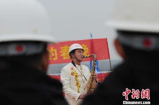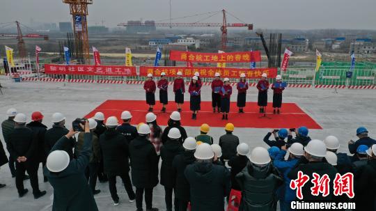 1月27日,在商合杭淮南南站的工地上,来自淮南黎明社区的“文艺轻骑兵”为中铁上海局建设者送上了一台精彩的工地“春晚”,让他们感受"第二故乡"的温暖。据了解,为确保商合杭按时交付使用,春节期间,商合杭淮南南站的工地上将会有1000余名建设者坚守施工一线,保质保量完成高铁工程建设。