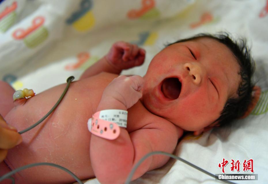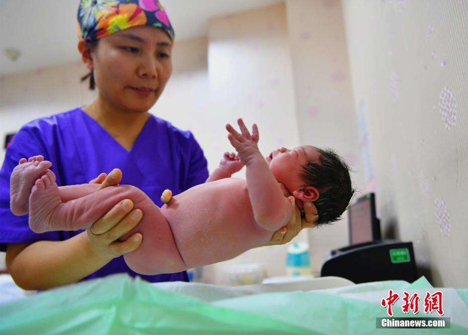 2月5日零时零一分四十秒,伴随一阵阵清脆的啼哭声,一个健康的女宝宝在河北石家庄妇产医院东院平安降生,成为该院猪年的第一个新年宝宝。中新社记者 翟羽佳 摄