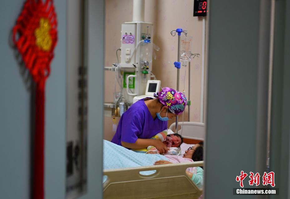 2月5日零时零一分四十秒,伴随一阵阵清脆的啼哭声,一个健康的女宝宝在河北石家庄妇产医院东院平安降生,成为该院猪年的第一个新年宝宝。中新社记者 翟羽佳 摄