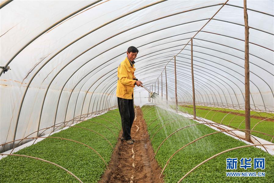 3月11日,在明光市管店镇甜叶菊育苗扶贫基地,农户在甜叶菊育苗大棚内忙碌。