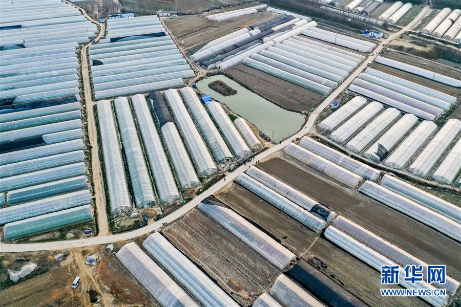 3月11日无人机拍摄的明光市管店镇甜叶菊育苗扶贫基地一角。 新华社记者 曹力 摄