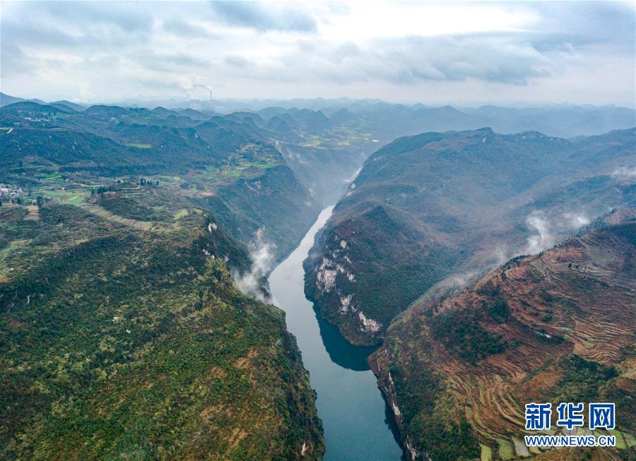 这是3月14日拍摄的鸭池河大峡谷风光(无人机拍摄)。 新华社记者 刘续 摄