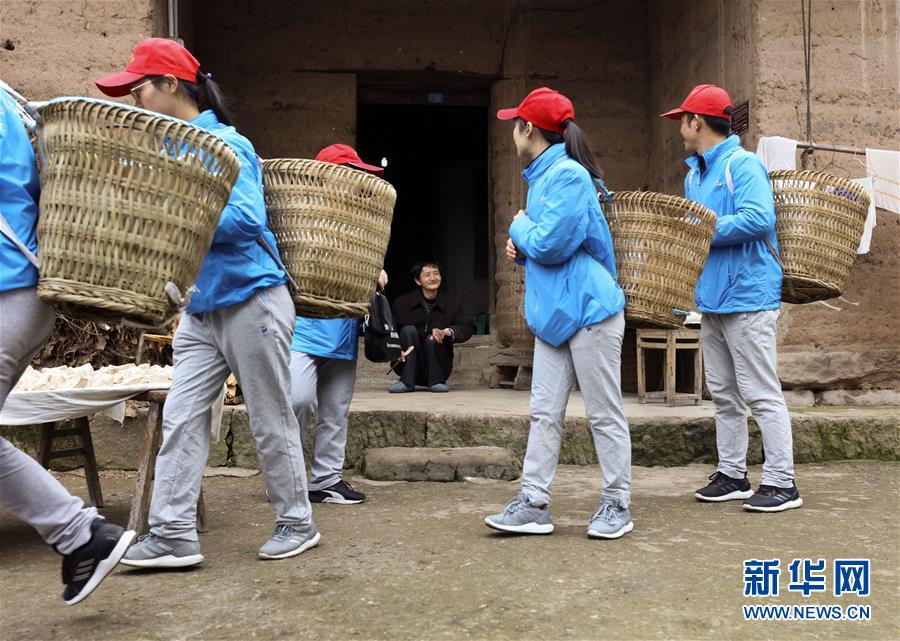 体检结束后,陶家镇友爱村18社小儿麻痹症患者朱崇德(中)在家门口,目送“背篓医生”离去(2月20日摄)。 新华社记者 兰红光 摄