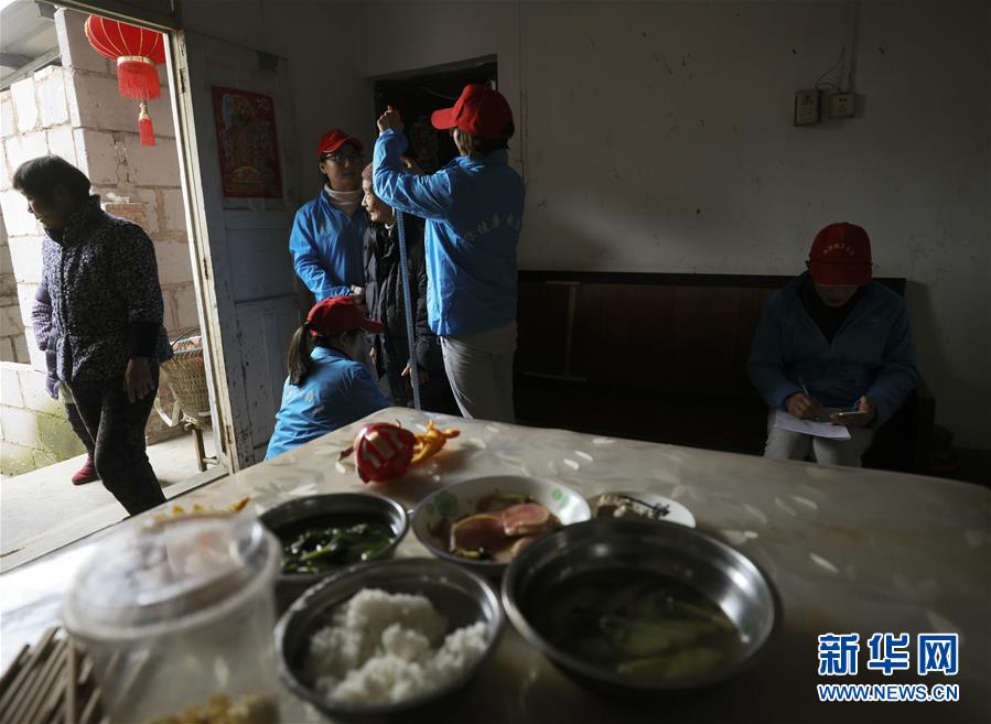 陶家镇治安村18社一个贫困家庭里,“背篓医生”们在为100岁的老人刘宴清(右三)进行体检(2月20日摄)。新华社记者 兰红光 摄