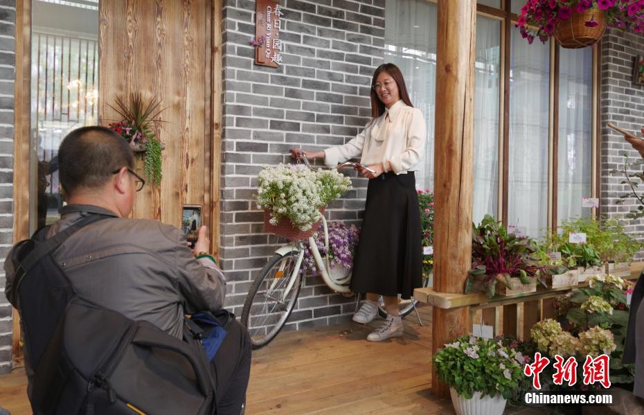 4月29日,2019年中国北京世界园艺博览会(简称北京世园会)开园,正式对公众开放。图为观众在延庆展区内拍照。中新社记者 贾天勇 摄