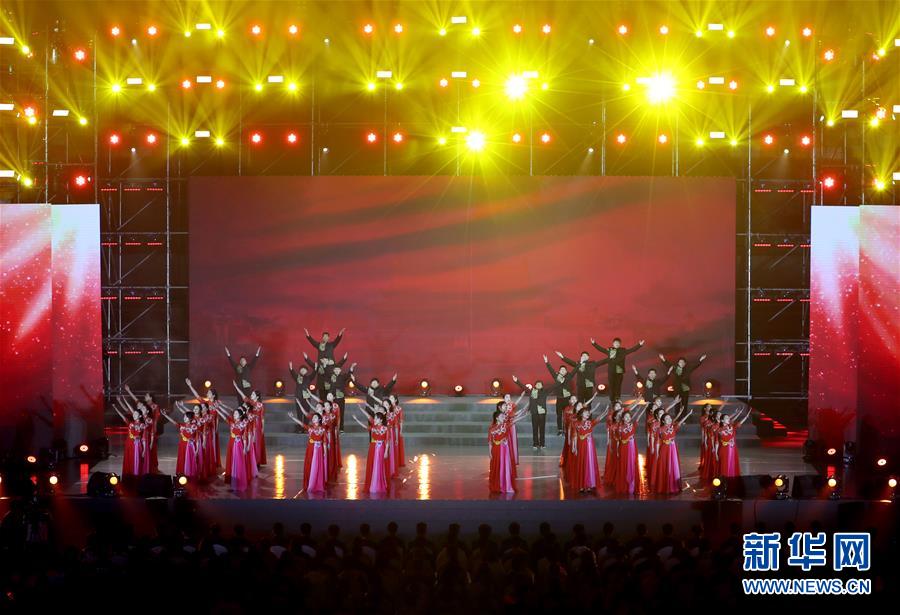 4月29日,上海大学的学生合唱《没有共产党就没有新中国》。 4月29日晚,以“青春心向党,建功新时代”为主题的“上海青少年纪念五四运动100周年主题歌会”在上海大学生体育中心举行,来自全市多所高校、中小学的近6000名团员青年、少先队员参加歌会。 新华社记者 刘颖 摄