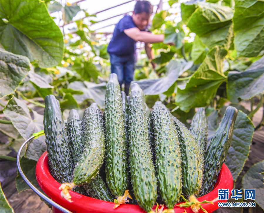 近年来,河北省枣强县在实施精准扶贫工程中引导贫困户集中连片种植大棚黄瓜,以产业增收促脱贫。目前,该县黄瓜种植面积已达1000余亩,亩收入2万多元。 新华社记者 李晓果 摄