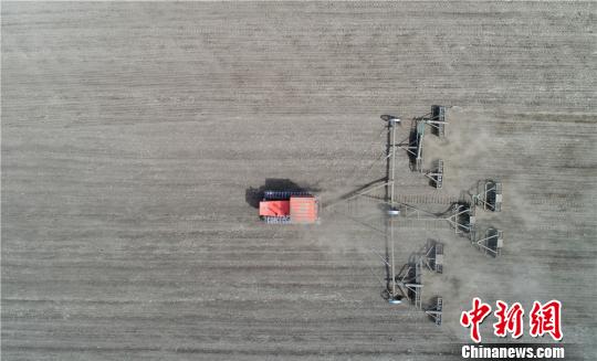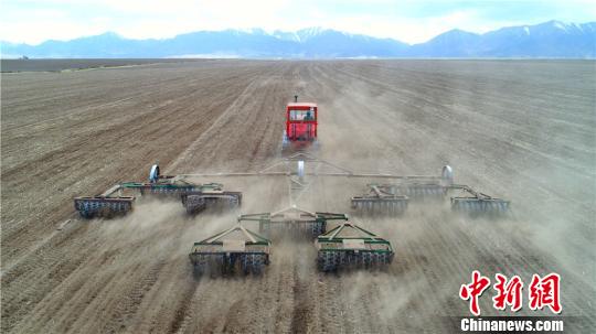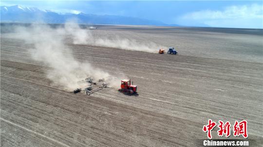 5月23日,一台台轮式拖拉机在山丹马场田间进行燕麦草播种作业。位于祁连山北麓的甘肃山丹马场属沿山冷凉地区,气候和土壤适合燕麦草的生长。近年来,山丹马场调整种植结构,目前已成为中国最大的牧草生产基地。