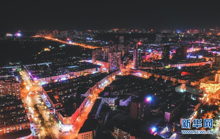 这是5月11日无人机拍摄的松花江畔吉林市城区夜景。 新华社记者许畅摄