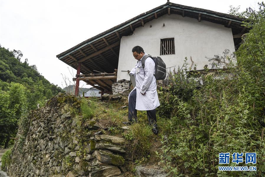 5月28日,何永清“送医上门”走在崎岖小道上。山大沟深,他有时一个来回就是6个多小时。 新华社记者 陶明 摄