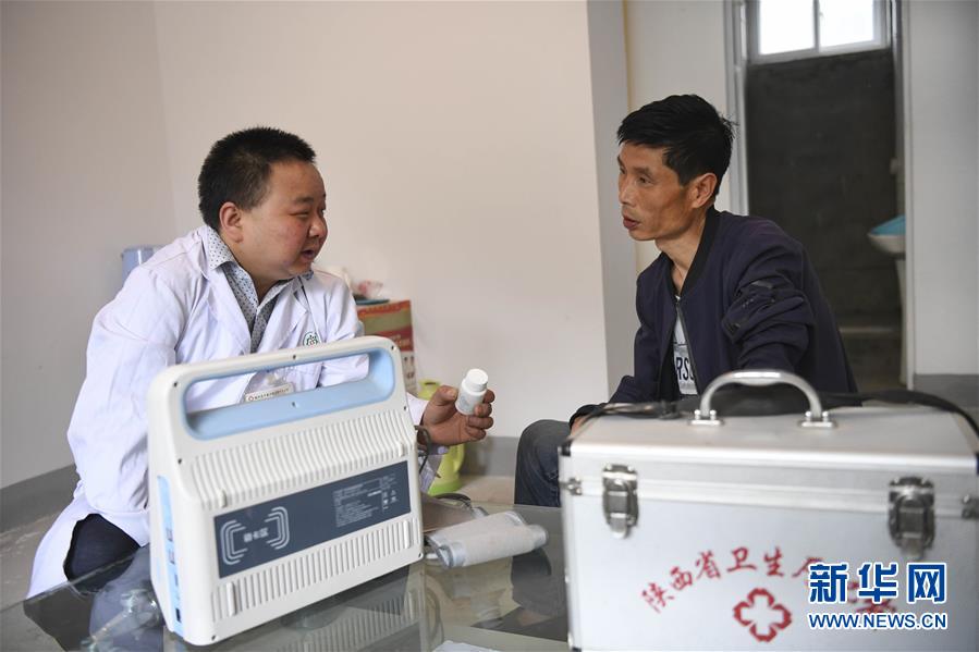 5月28日,何永清(左)“送医上门”为村民文武看病。新华社记者 陶明 摄
