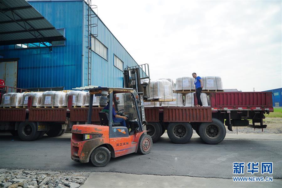 在江西省萍乡市湘东区一家生产透水砖的企业,工人在搬运即将外销的透水砖(5月29日摄)。 新华社记者 周密 摄 图片来源:新华网
