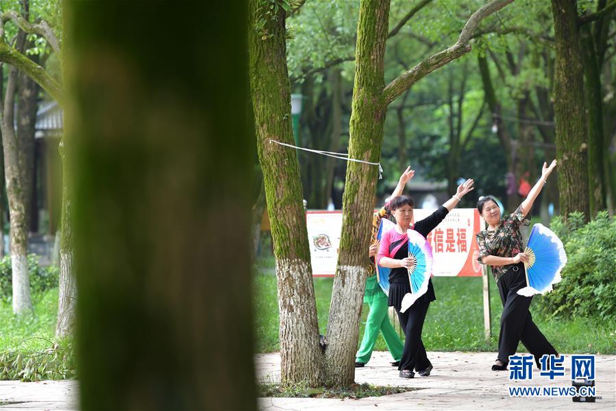 在江西省萍乡市鹅湖公园,市民在跳舞休闲(5月28日摄)。 新华社记者 彭昭之 摄 图片来源:新华网