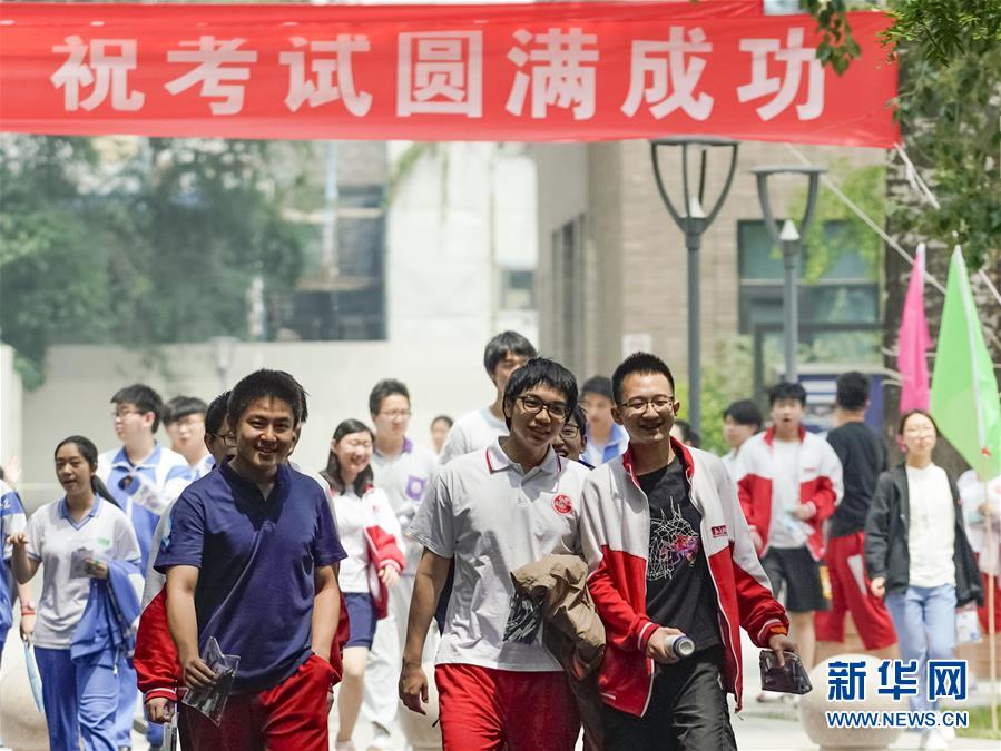 6月7日,在北京大学附属中学考点,考生在上午考试结束后走出考场。 当日,2019年高考拉开帷幕。 新华社记者 沈伯韩 摄