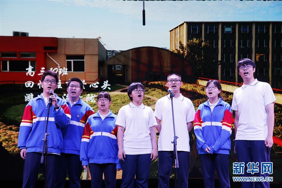 6月19日,北京五中高三年级学生在毕业典礼上表演诗朗诵。 当日,北京五中教育集团2019届高三年级及五中分校初三年级学生毕业典礼分别在东城区图书馆剧场和中山公园音乐堂举行。毕业生们领取了毕业证书,并向老师献花,感谢师恩。 新华社发(周良 摄)