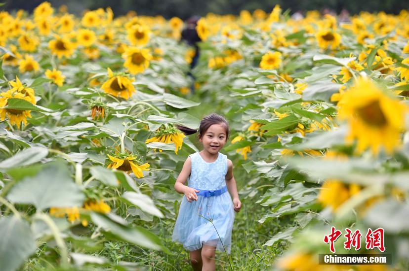 南京校园向日葵竞相怒放引民众赏花摄影“两不误”