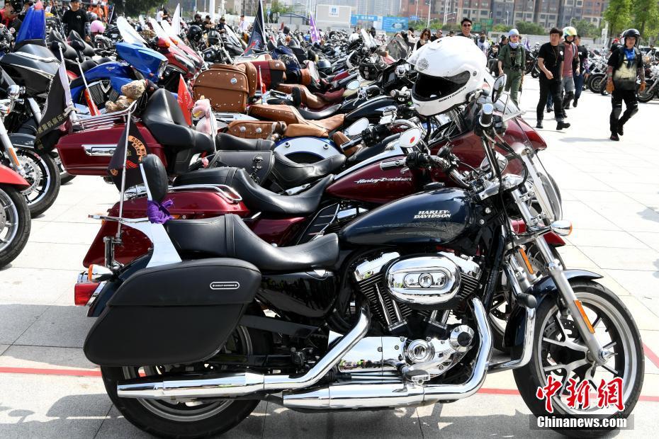 6月30日,活动现场停放的重型机车吸引民众。当日,作为首届海丝动力摩托车文化交流节活动之一的“海丝动力骑行”在福建莆田举行,近三千台重型机车有序地从莆田会展中心出发,进行骑行巡游活动。 中新社记者 王东明 摄