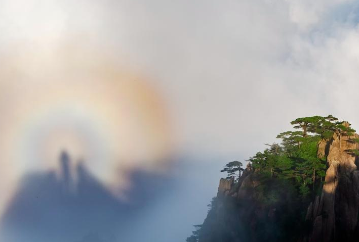 安徽黄山现云海“佛光”红霞美景吸引游人