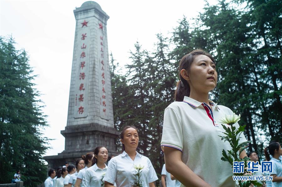 7月15日,再走长征路的记者团来到位于重庆綦江的石壕红军烈士墓,向牺牲的红军战士敬献鲜花,缅怀先烈。