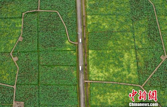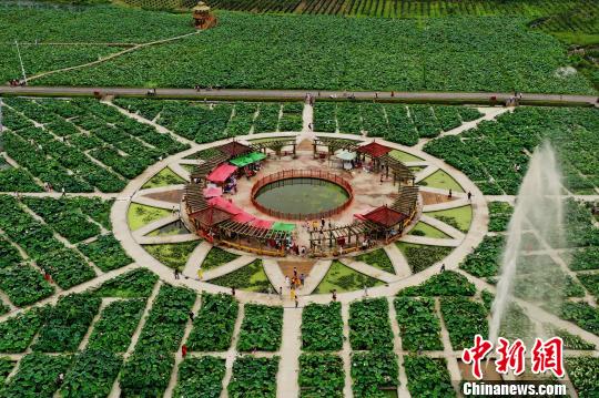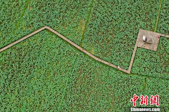高空航拍下的百亩荷花园。 刘占昆 摄