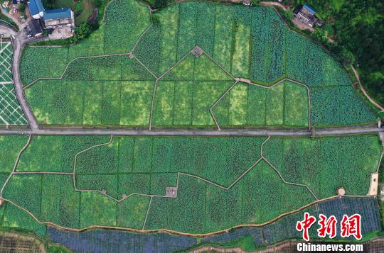 7月21日,“中国白莲之乡”江西省石城县的百里荷花生态长廊一片碧绿。 刘占昆 摄