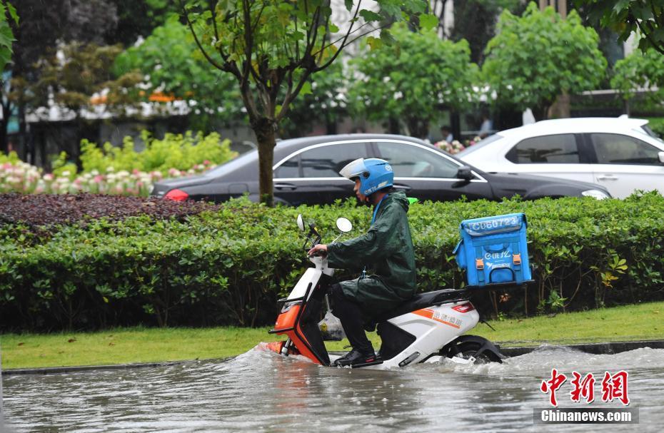 东莞降暴雨多地“水浸街” 积水没膝市民街头抓鱼(图)