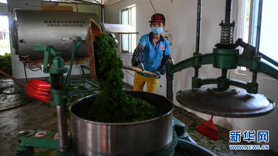 7月26日,钦州市钦南区犀牛脚镇西寮村群众在“扶贫车间”制茶。 广西钦州市钦南区犀牛脚镇西寮村是当地的一个贫困村。近年来,当地企业利用该村可种植相思藤的产业优势,开设“扶贫车间”带动当地30多户贫困群众生产加工“相思茶”,产品销往北部湾地区和广东、上海、杭州等地,年营业额达到45万多元,助力贫困户脱贫。 新华社记者 张爱林 摄