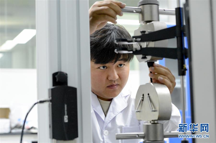 新华社照片,乌鲁木齐,2019年7月27日 火焰山下的“逐日人” 检测员尤里武在恒温恒湿室进行塑料拉伸实验(7月17日摄)。新华社记者 丁磊 摄