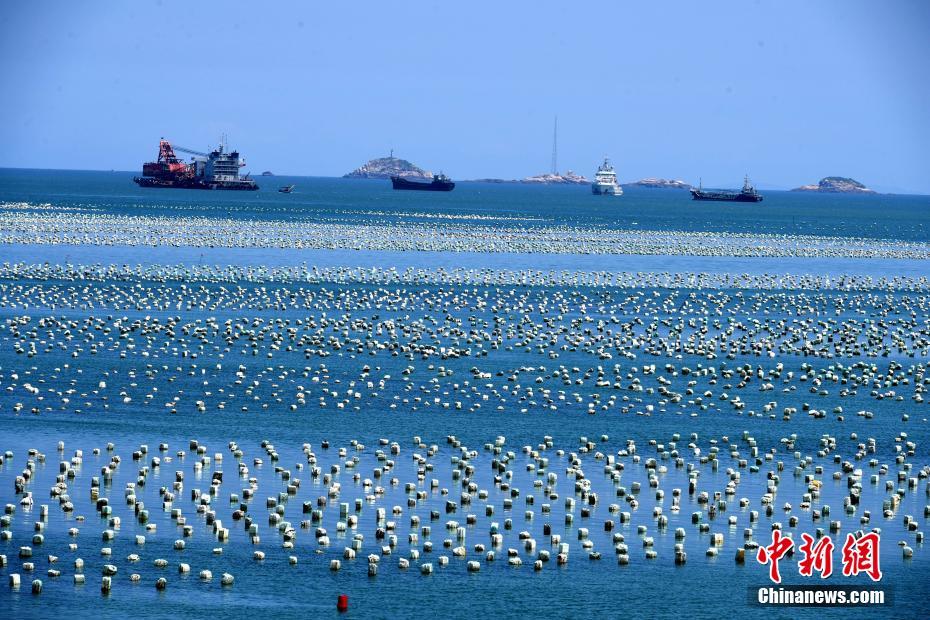 7月29日,蓝天白云下,福建省连江县“海上牧场”蔚为壮观。中新社记者 王东明 摄