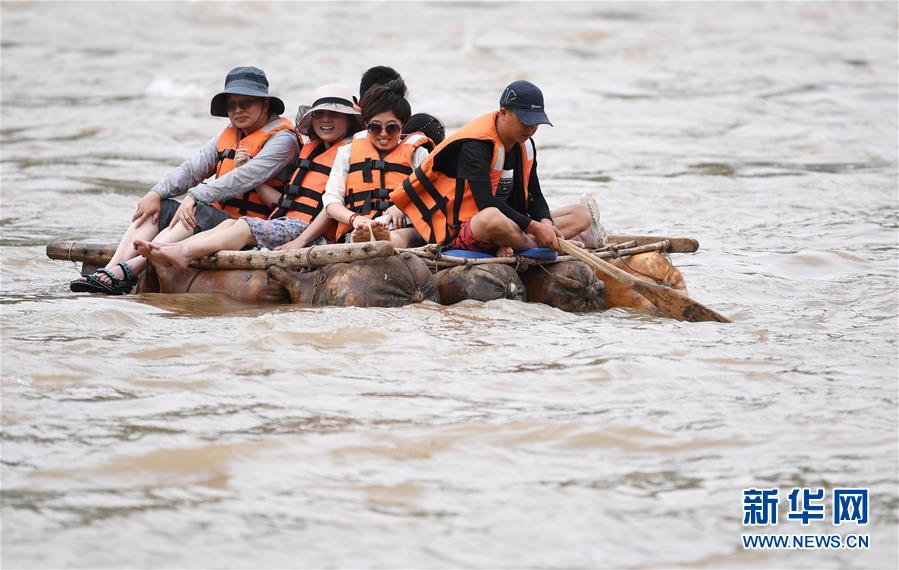8月7日,游客在黄河兰州段体验羊皮筏子漂流。 受刘家峡水库出库流量调减影响,当前黄河兰州段水位逐渐回落,此前因水位过高暂时关闭的部分沿河公园、索道码头等设施已完成清淤工作并重新开放,快艇、游轮、羊皮筏子等旅游项目也陆续恢复运营。 当前黄河流域仍处于防汛关键期,水利部门密切关注水情、雨情,确保防汛度汛工作顺利进行。 新华社记者 陈斌 摄