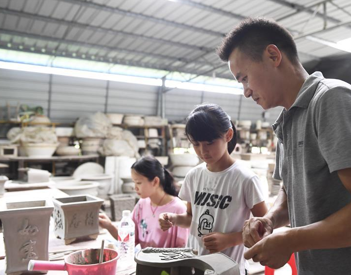 今年41岁的赵勇是广西桂平市社坡镇福和村的一名农民。2015年,在广东务工多年的赵勇携妻女返回福和村创办了一家小型陶瓷制品加工厂,主要制作手工花盆、花瓶、陶瓷桌椅等产品。