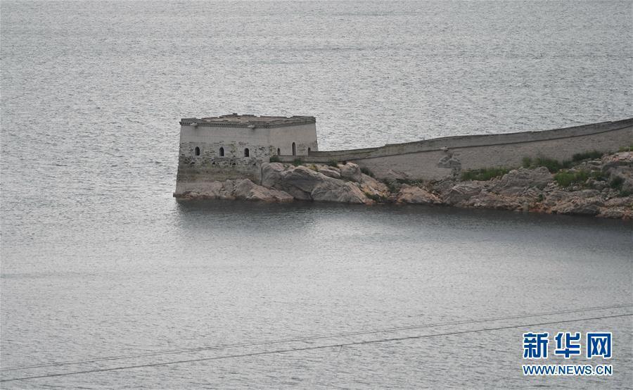 是露出水面的“水下长城”部分城墙(8月13日摄)。 日前,位于河北省宽城满族自治县境内的潘家口水库蓄水量减少,水库内一段“水下长城”再次露出水面,景色壮美。新华社记者 朱旭东 摄 图片来源:新华网