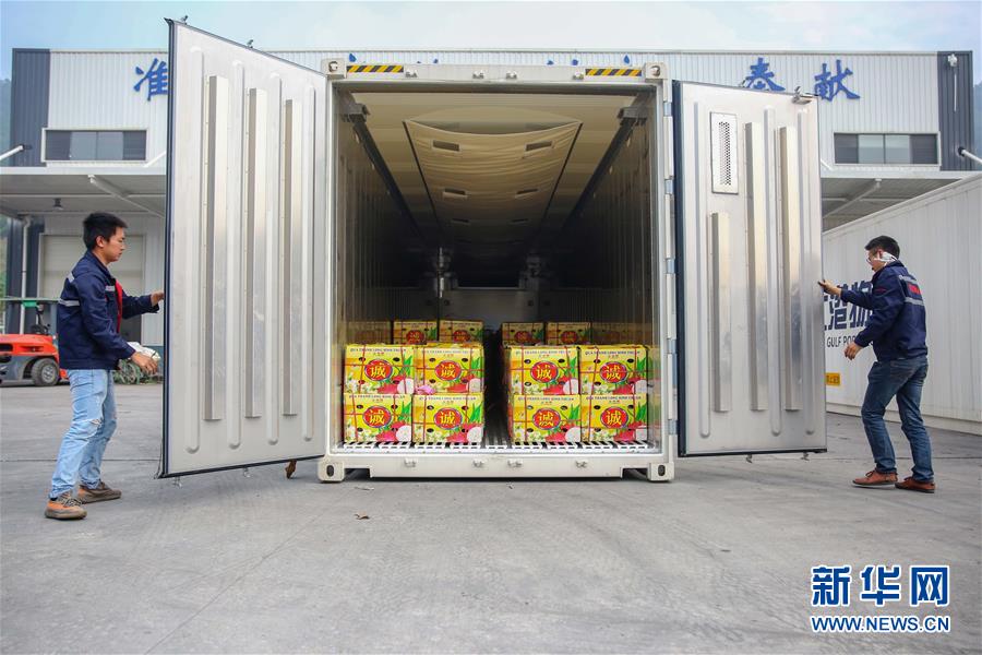 来自越南的火龙果搭乘中新互联互通陆海新通道首个冷链专列抵达重庆(2018年10月30日摄)。 新华社记者 刘潺 摄