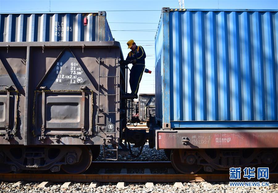 8月15日,一名调车组作业人员在车厢上绞闸。新华社记者 邵瑞 摄