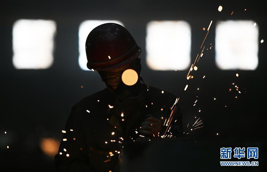 在位于黑龙江省齐齐哈尔市的中国一重集团有限公司的生产车间内,从事焊接、气割、浇铸等工作的工人,用辛勤的劳动奏出火花“交响曲”。