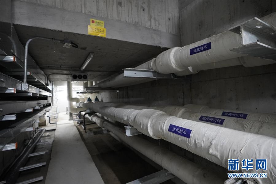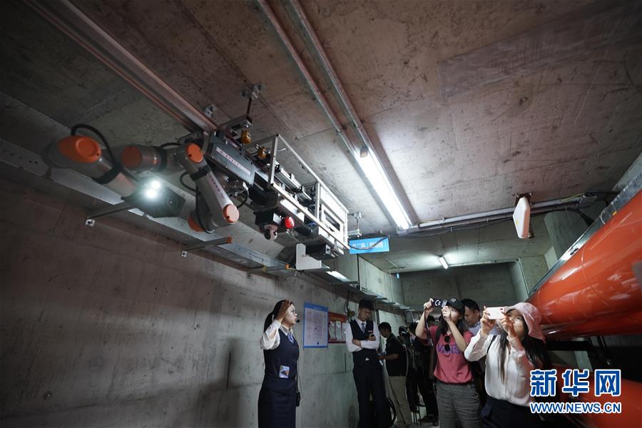 8月30日拍摄的雄安新区市民服务中心地下管廊。 雄安新区市民服务中心的地下管廊长3.3公里,纳入了给水、电力、通信等7类管道。管廊内配备了一部巡检机器人,24小时不间断地进行巡检。管廊可以解决马路拉链现象,方便线路维护和检修。 新华社记者 牟宇 摄