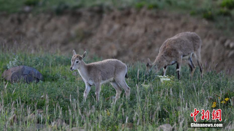 9月2日,西藏山南羊卓雍错湖畔,一只小藏原羚和同伴一起出来觅食。西藏近年来不断加大环保力度,当地环境日益趋好,野生动物种群逐渐恢复。中新社记者 江飞波 摄