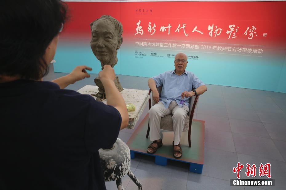 9月9日,“为新时代人物塑像:中国美术馆雕塑工作坊十期回顾暨2019年教师节专场塑像活动”在北京中国美术馆举行。“为新时代人物塑像”雕塑工作坊是中国美术馆近年推出的公共教育品牌项目,自2017年9月13日至2019年9月9日已举办十期。图为2019年教师节专场塑像活动现场,艺术家为著名数学家、拓扑学家、中国科学院院士、第三世界科学院院士、北京大学数学科学学院教授、现年82岁高龄的姜伯驹塑像。中新社记者 杜洋 摄